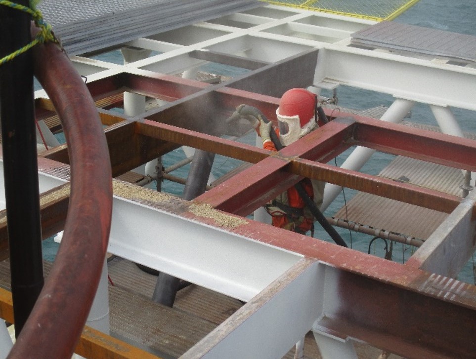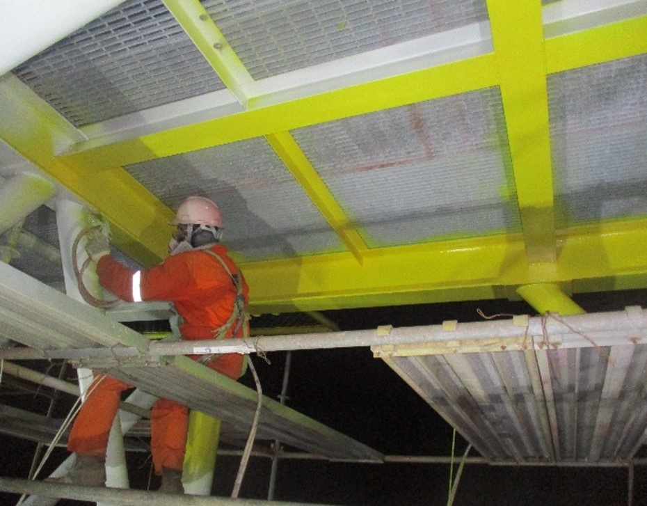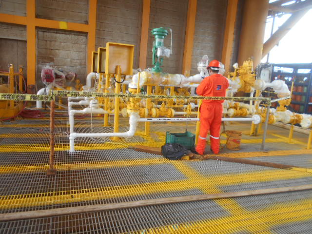 Aplicación de protección anticorrosiva a estructuras marinas y rotulado en el área de pozos.