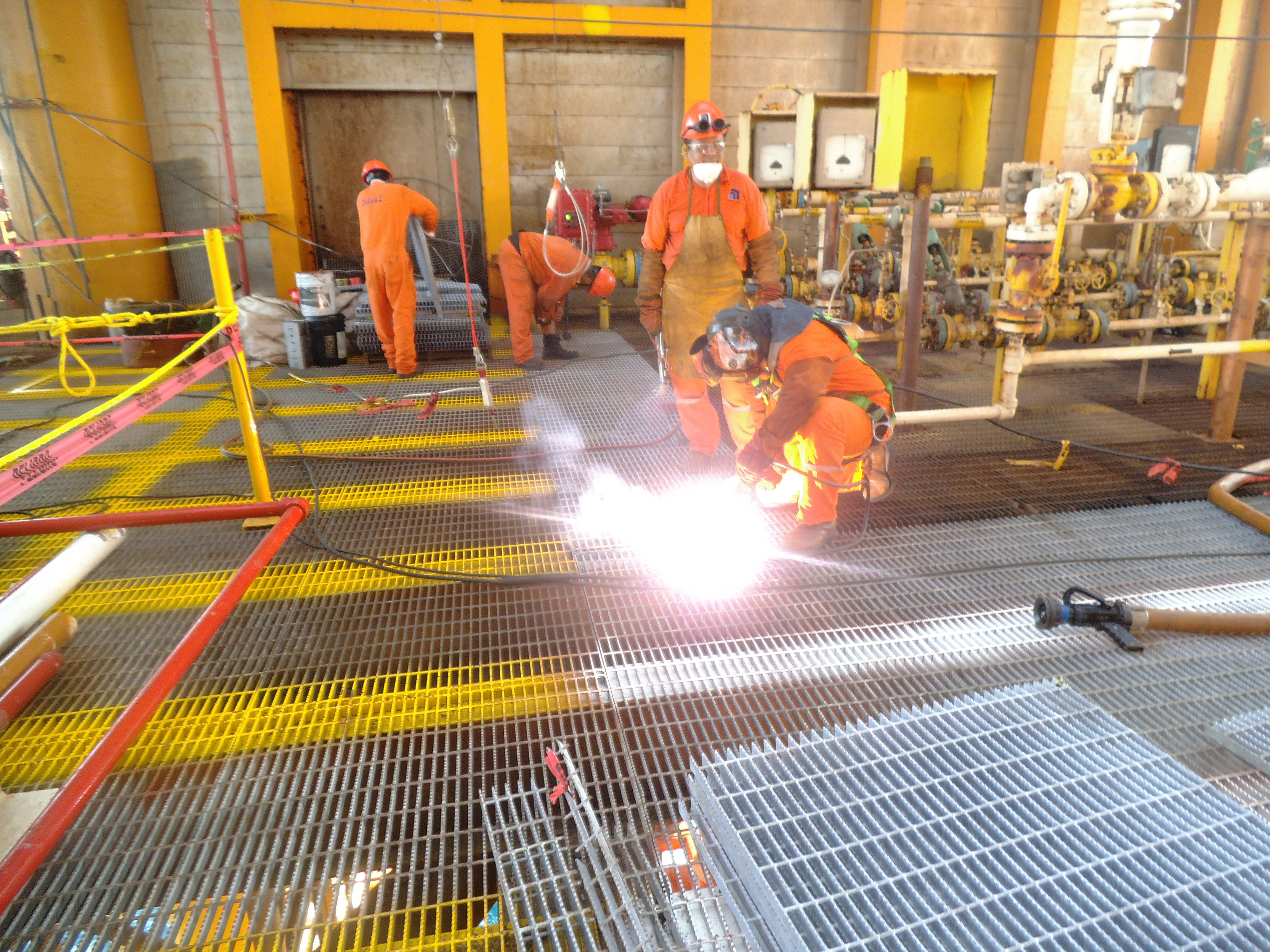 Sustitución de placa antiderrapante, rejilla y tubería de 3" en plataforma temporal